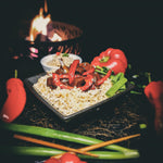 IngredientsBeef cubes (40%), Brown rice (30%), Spinach (4%), Carrot (4%), spanish onion (4%). cucumber (4%), Capsicum (4%), Mongolian suace (10%) Hosin sauce, Oyster sauce, salt