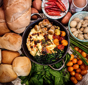 Chilli Egg Breakfast with Saluted Cherry Tomato's, Mushrooms and Spinach