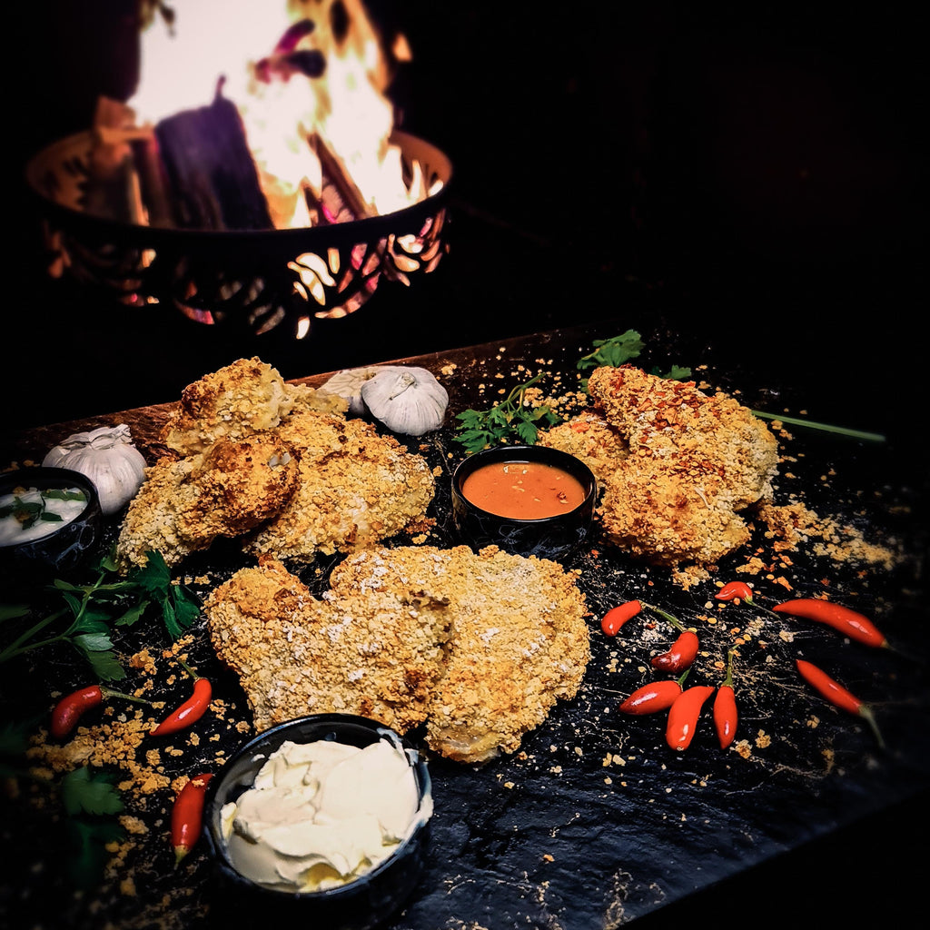 Panko Chicken Tenders with Mash and Hot sauce